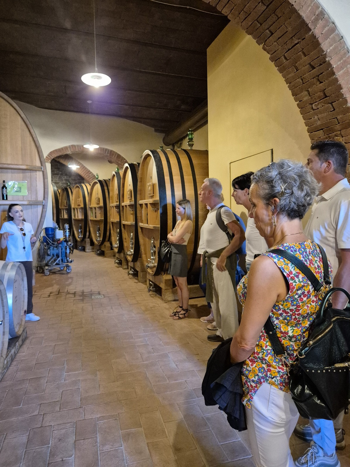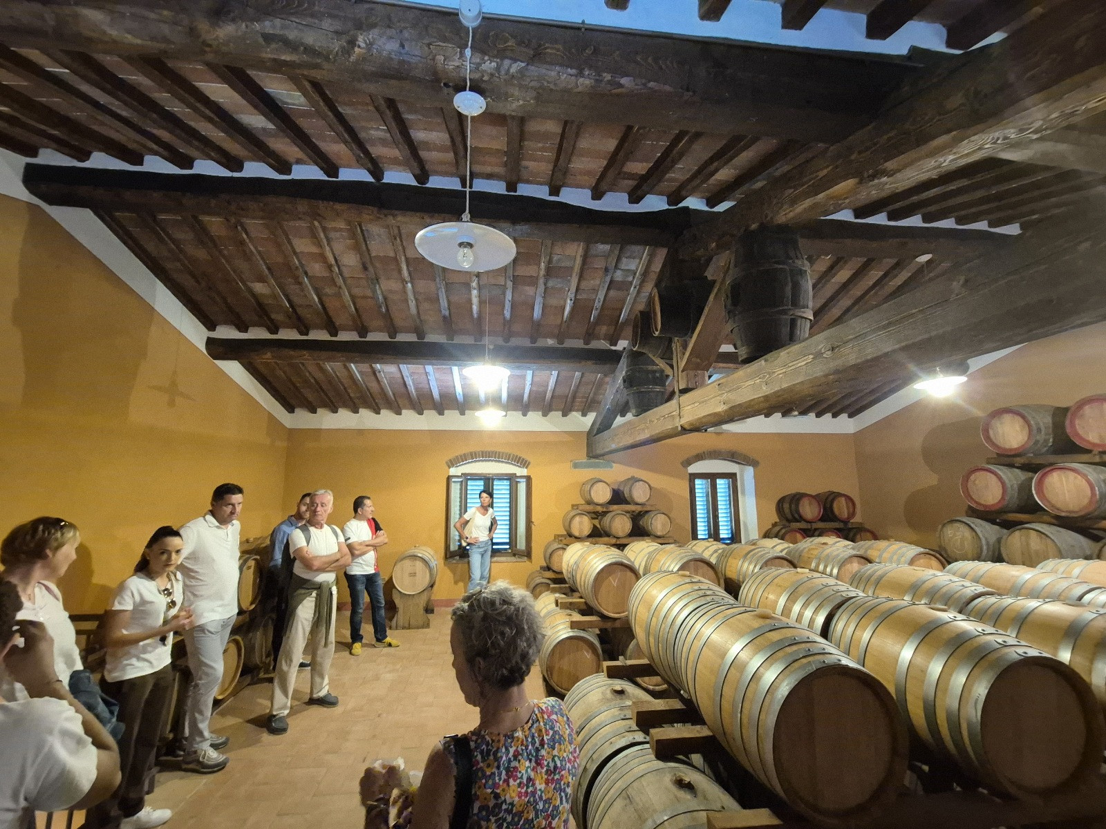 Camminiamo tra i filari insieme alla nostra guida, esperta narratrice della Cantina e capace di trasmettere la passione e il duro lavoro che pervade tutti coloro che si occupano di assistere e curare con estrema attenzione i vigneti e il loro prodotto principale, un chianti classico denominato Lamole di Lamole. A tratti il nostro sguardo si perde fra le colline, i boschi e i vitigni, verso le terrazze e i muretti a secco che ci circondano e che ci fanno dimenticare il frastuono delle città e la frenesia della vita moderna. Tutto qui segue i ritmi della natura e noi non possiamo che restare colpiti dalla passione che ci viene trasmessa nei racconti e comprendiamo con quanto orgoglio, questa Cantina e tutti coloro che la vivono, vogliono trasmetterci la fatica, la pazienza e il coraggio e soprattutto il rispetto della natura; qui la conduzione dei vigneti è interamente biologica; compost organico derivante dalle potature dei vigneti e dai raspi della vendemmia viene utilizzato come correttivo naturale del terreno, e “induttori di resistenza” a base di alghe, aloe e propoli, vengono utilizzati per stimolare i sistemi di autodifesa della pianta al fine di proteggerla dagli attacchi esterni.