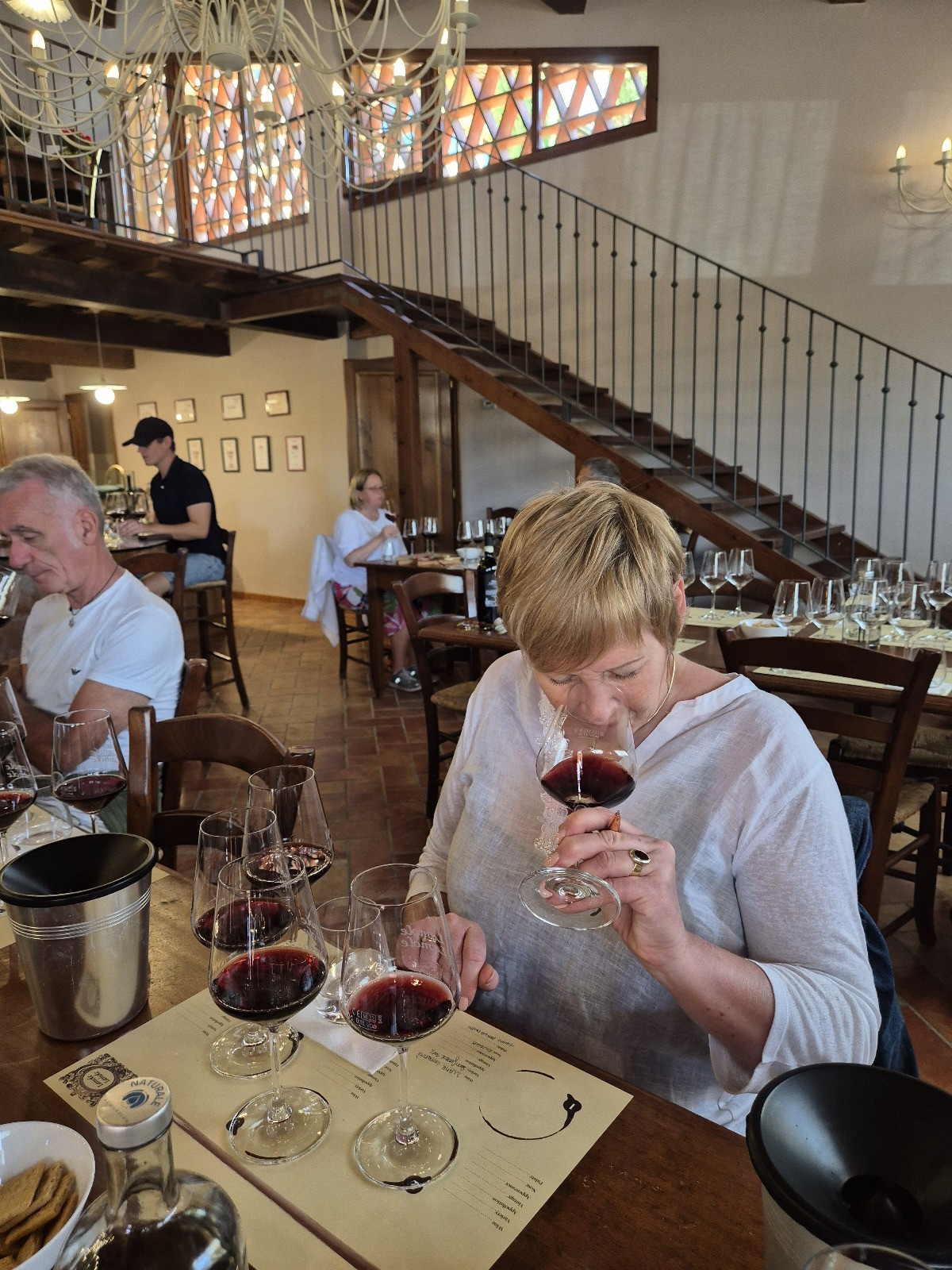 Ancora con il cuore pieno del silenzio, dei profumi e del paesaggio intorno a noi, chiudiamo la nostra visita con una degustazione dei loro complessi vini, profumati e finissimi, vigorosi e persistenti, e non possiamo che riflettere su un pensiero: degustare dopo aver visitato la cantina, attraversato i filari e annusato i profumi dell’ambiente circostante, gli stessi profumi che vivono i vitigni quotidianamente, quanto influisce nella degustazione del vino e nella trasmissione di sensazioni ed emozioni? Quanto sarebbero state diverse le sensazioni della degustazione di un vino in città, sulla tavola di un ristorante in un evento importante o in una cena fra amici? Non saprei cosa rispondere e penso che ognuno di noi abbia una risposta personale a tale pensiero, credendo, però, che la qualità del vino si percepisca sempre e comunque, se presente, ma di certo la degustazione in cantina, con il racconto di chi quel vino lo ha creato, lo segue, lo ama o semplicemente lo ha cresciuto e visto nascere, beh, almeno a livello emotivo forse ci insegna che decisamente conviene fare un viaggio e vivere l’emozione dell’immersione nel mondo del vino che stiamo degustando!!!