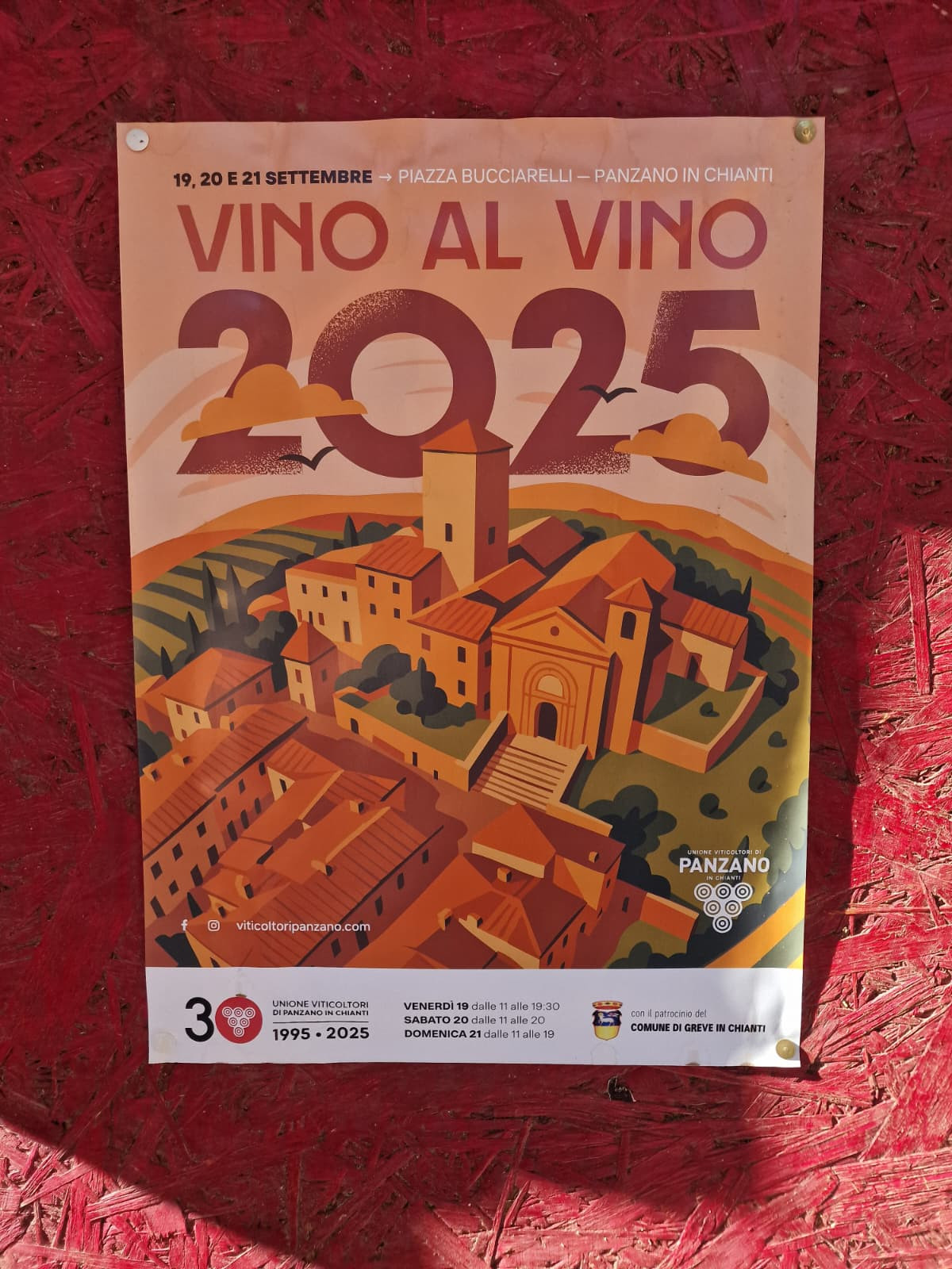 L’immersione nel vigneto, la visione della terra su cui cresce il vitigno, l’ascolto delle tecniche, del coraggio e della passione che caratterizzano un produttore è sicuramente un valore aggiunto anche nella degustazione, ma certamente sempre piacevole e sicuramente utile, soprattutto a chi non è proprio così vicino a questo mondo, è anche la possibilità di degustare alcuni vini partecipando semplicemente ad una festa di paese. Ed eccola qui, la sensazione che abbiamo provato il giorno prima, partecipando ad un evento organizzato dall’Unione Viticoltori di Panzano in Chianti, “Vino al Vino”, evento appunto celebrato nella piazzetta di Panzano, dove per ben 30 lunghi anni, i viticoltori della zona, quest’anno in numero di 22, hanno presentato e dato la possibilità a tutti coloro che, in un certo qual modo sono appassionati di vino, di poter degustare i propri vini, o almeno alcuni dei propri vini; certo, sicuramente nella confusione non si respira il profumo diretto della natura, il silenzio fra i filari e la tranquillità del paesaggio, ma nello stesso tempo non si può non apprezzare la capacità, la volontà e la costanza di tutti i produttori che presentano con orgoglio il loro vino, il loro Chianti classico, cercando di trasmettere comunque i loro valori e la loro passione per un prodotto assolutamente caratteristico del territorio e che parla del territorio, trattiene in sé gli elementi che lo contraddistinguono; e allora, fermiamoci un attimo con il produttore a fare due chiacchere e ascoltiamo il suo mondo, viviamo la sua passione attraverso le sue parole, attraverso le sue espressioni, e allora si, che anche in questo caso, sebbene solo per un momento, riusciamo ad uscire dalla festa, per immergerci, ancora una volta, nell’abbraccio dei vigneti, nel calore del sole e nel sublime territorio del Chianti Classico.